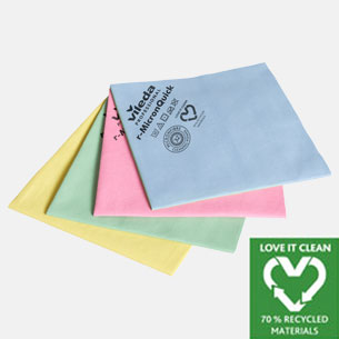 Superior micronfibre hygiene & disinfection and 70% recycled. Excellent sufficiency to remove fatty dirt on every surface. It removes up to 99.99% of bacteria and viruses, certified by an independent test institute. With its superior micronfibres that guarantee lint-free cleaning results, it is ideal for the Food and Beverage Area due its one-step drying and polishing function.